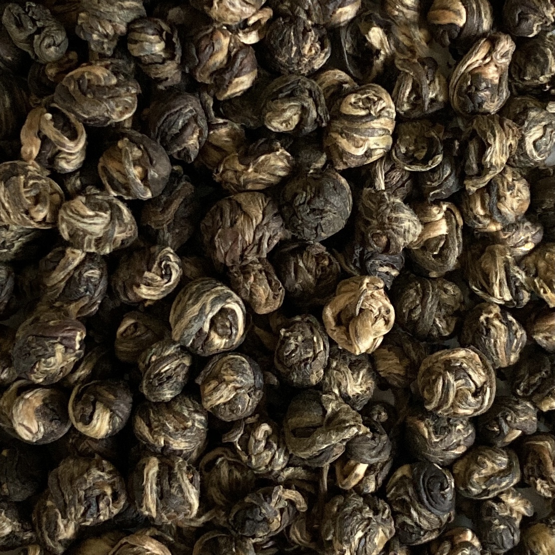 Gemme arrotolate a forma di perla, naturalmente profumate con fiori di gelsomino.
