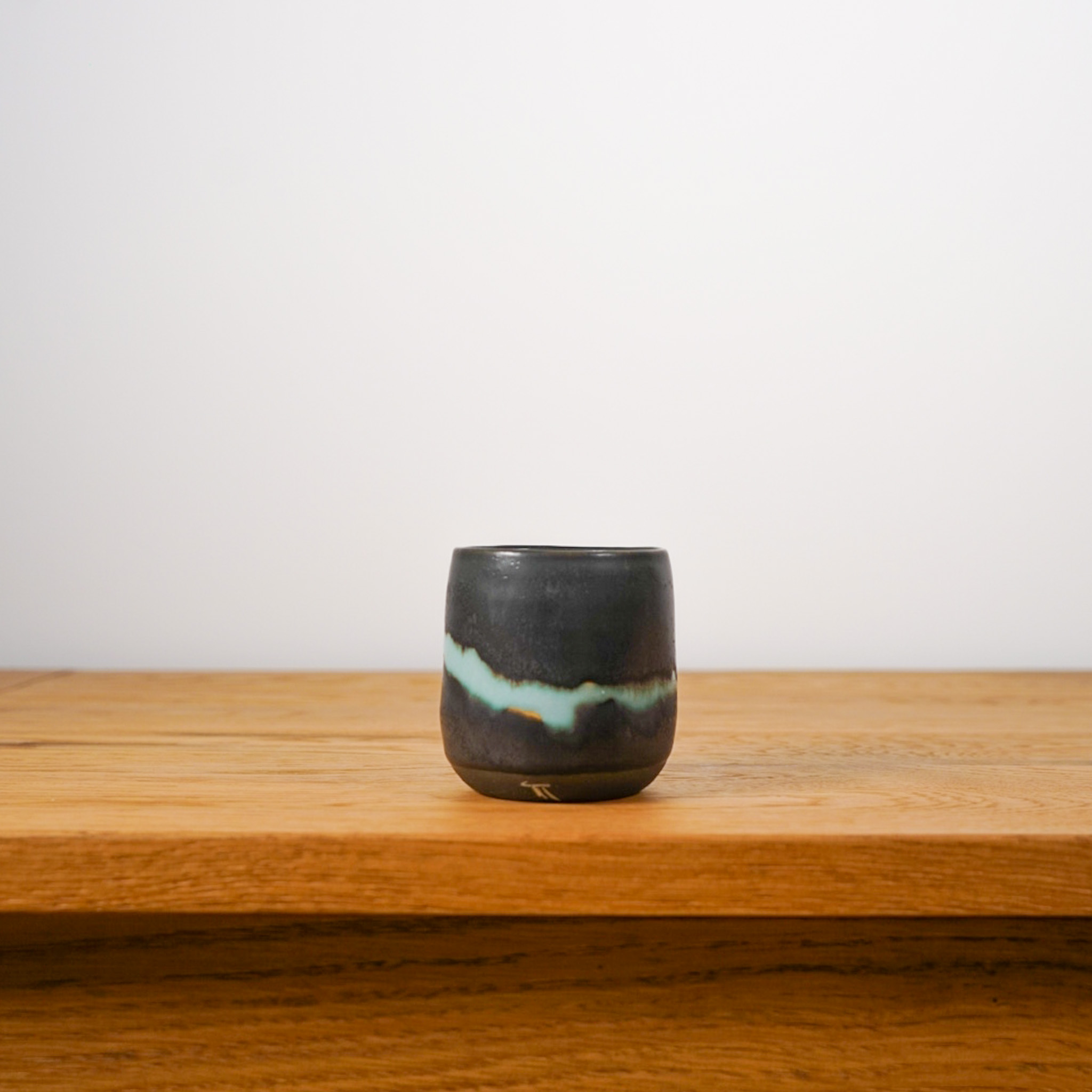 La terra viene fatta seccare completamente, per poi essere cotta una prima volta a 980°, e successivamente smaltata. Lo smalto nero ed acquamarina è realizzato con terre argillose, cenere e sabbia. La tazzina viene quindi cotta ad alta temperatura (circa 1300°) per 24 ore.