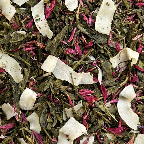 Ingredienti: tè verde (72%), chips di cocco, menta piperita, petali di fiordaliso, aroma.